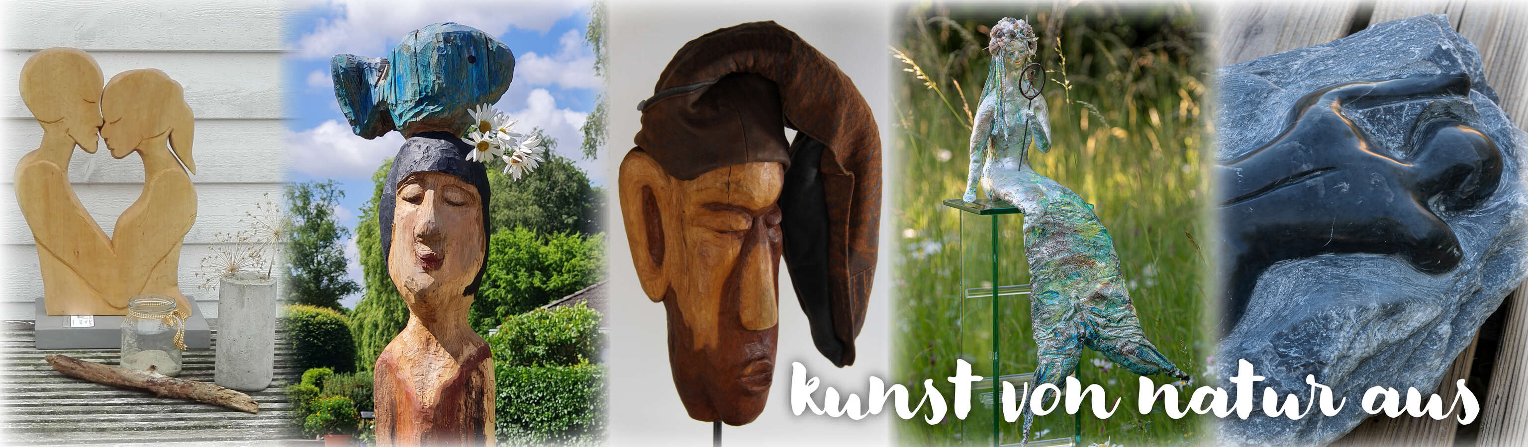 Seit 2015 schnitze ich figürliche Skulpturen aus Holz - bevorzugt Obstgehölz - und bearbeite Speckstein. Dies ist ein zufälliges Material, sodass dessen Bearbeitung nicht genau geplant werden kann. Es ist meine Herausforderung, ihm ein neues Dasein als Kunst zu geben.