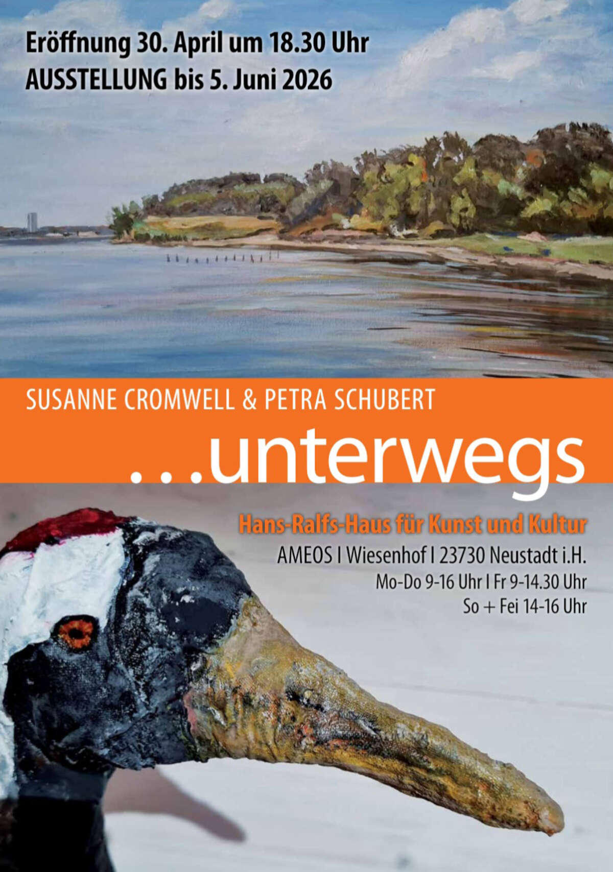 „UNTERWEGS“ im „Hans-Ralfs-Haus für Kunst und Kultur“ AMEOS in Neustadt in Holstein vom 30. April bis 5. Juni 2026 mit Petra Schubert sowie Susanne Cromwell —